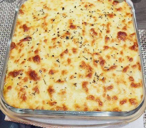 Em um refratário fundo, untado com margarina ou azeite, monte camadas de rodelas de batata intercaladas com o creme.