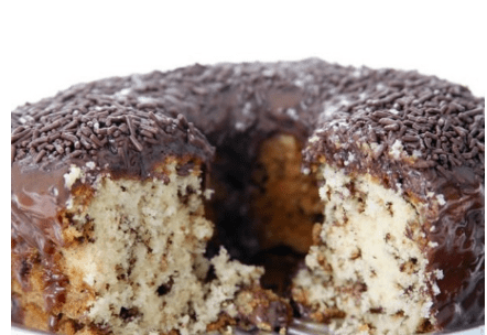 4. Despeje a massa em forma com buraco central untada com manteiga e enfarinhada. Leve para assar em forno pré aquecido por aproximadamente 40 minutos ou até que o bolo esteja completamente assado.